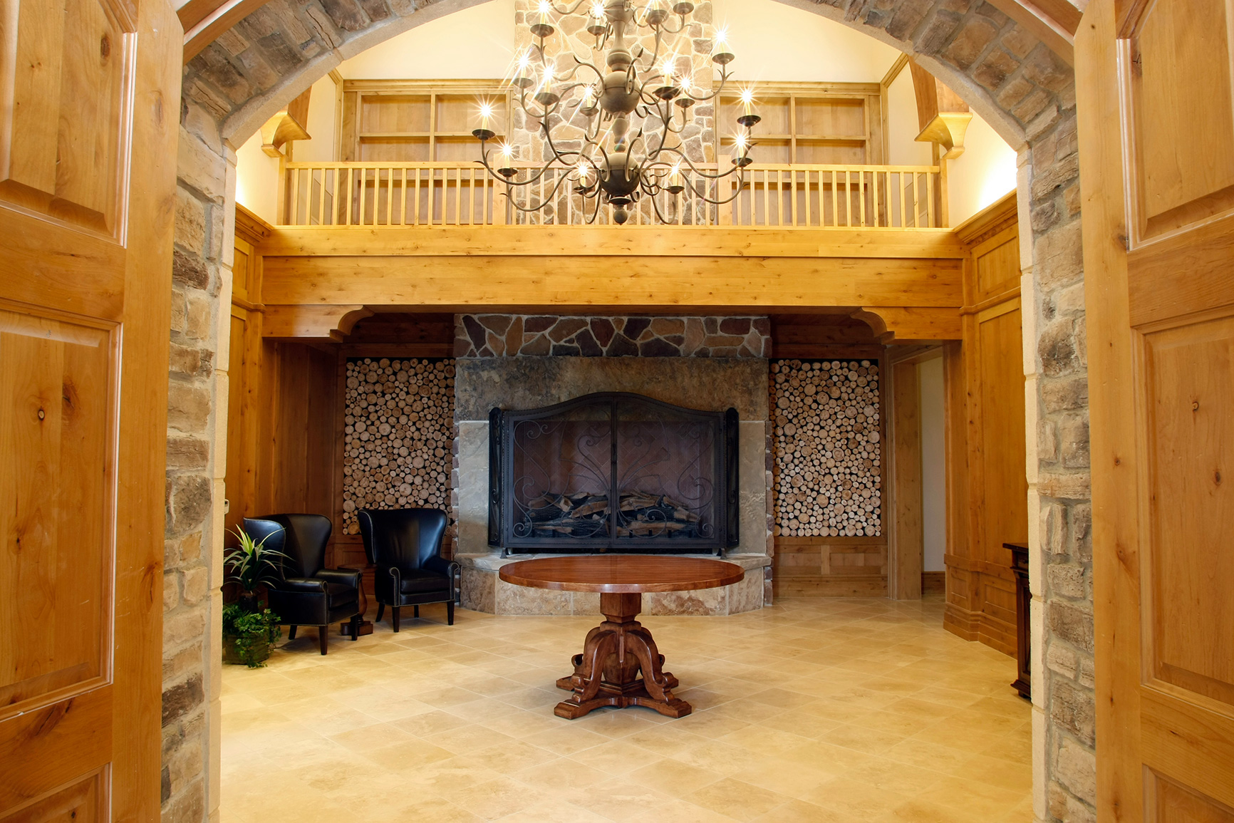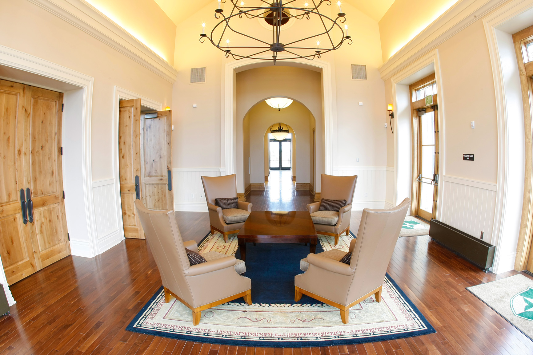 The exterior façade was a combination of heavy timber, stone, stucco, and over 900 pieces of architectural pre-cast concrete. The interior of the facility was composed of a combination of cultured stone, plaster, timber, ornamental iron, and high-end custom millwork and lockers and three grand fireplaces.