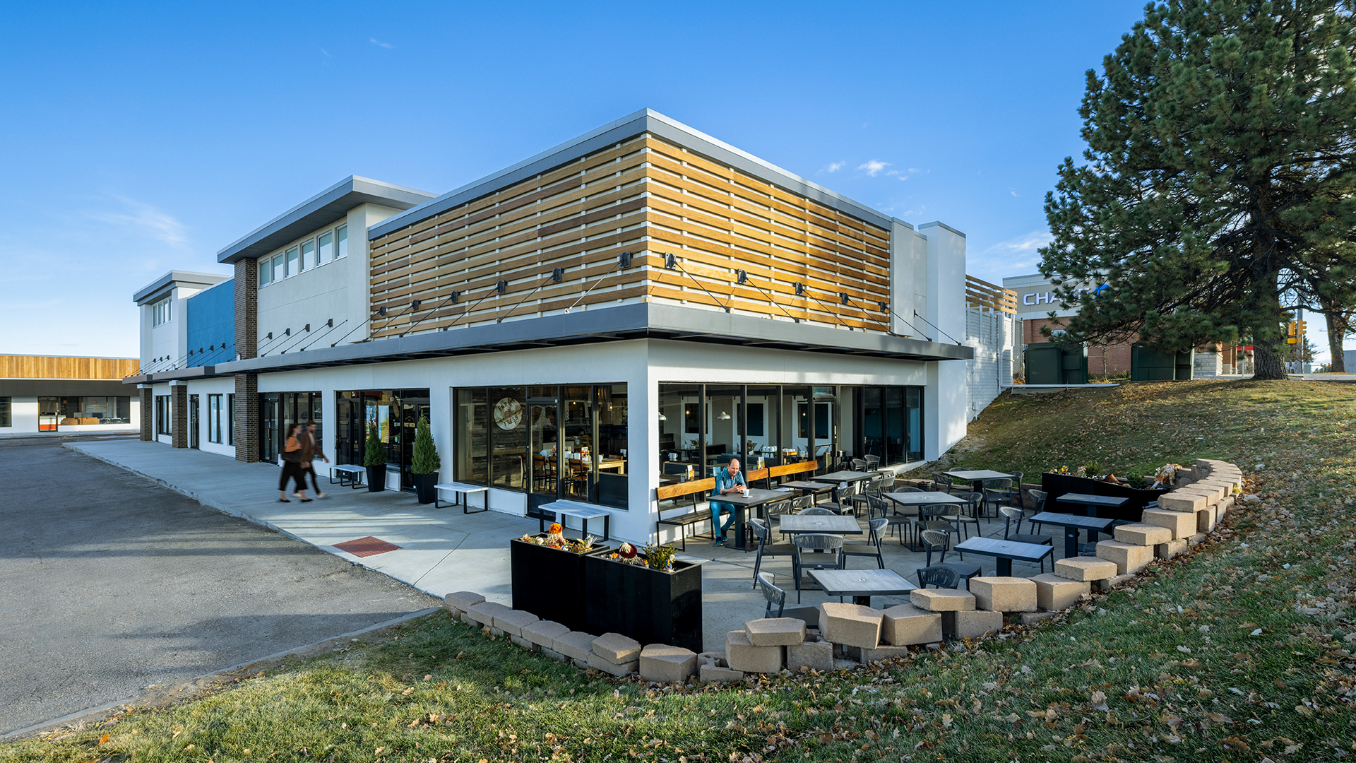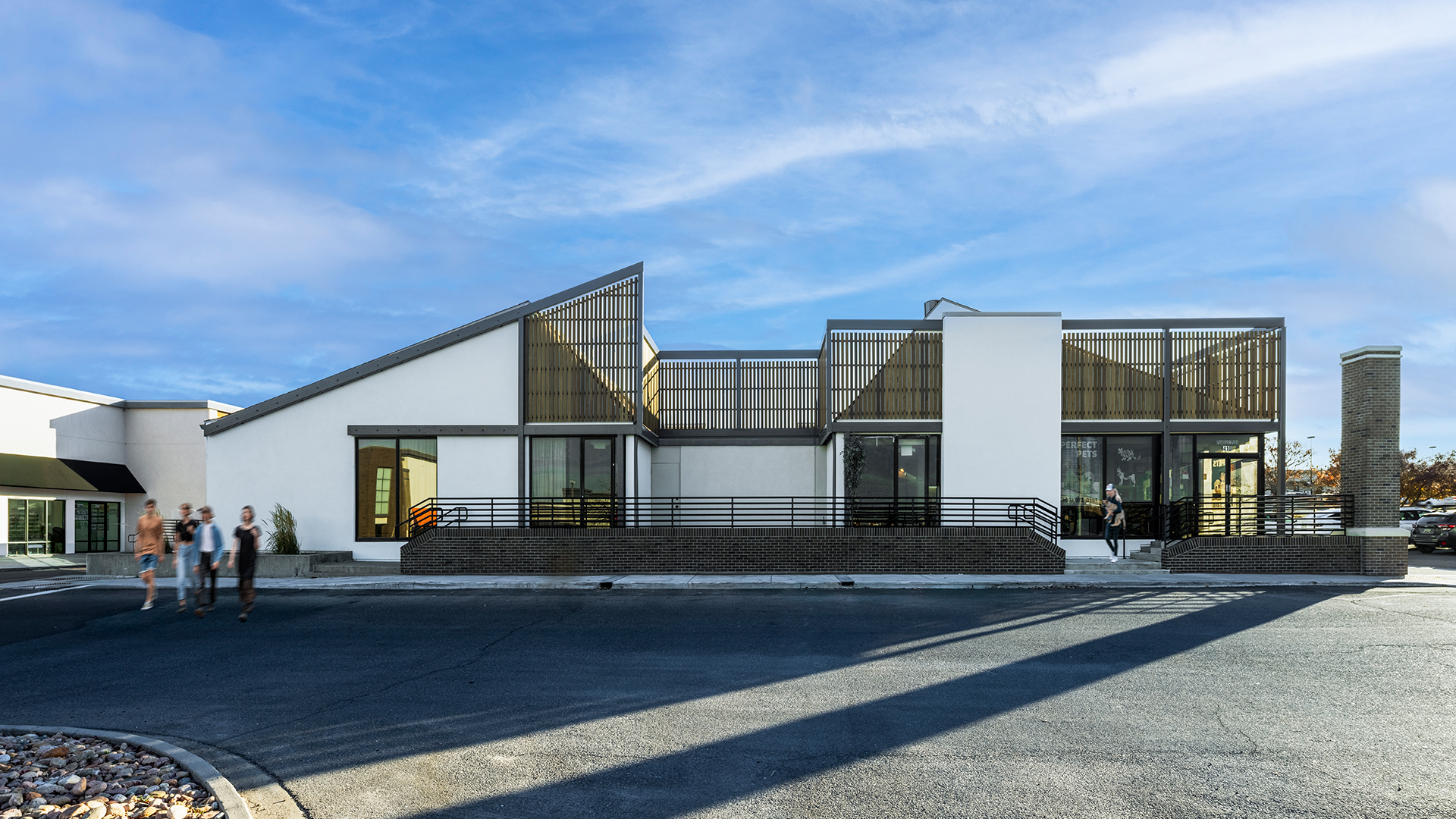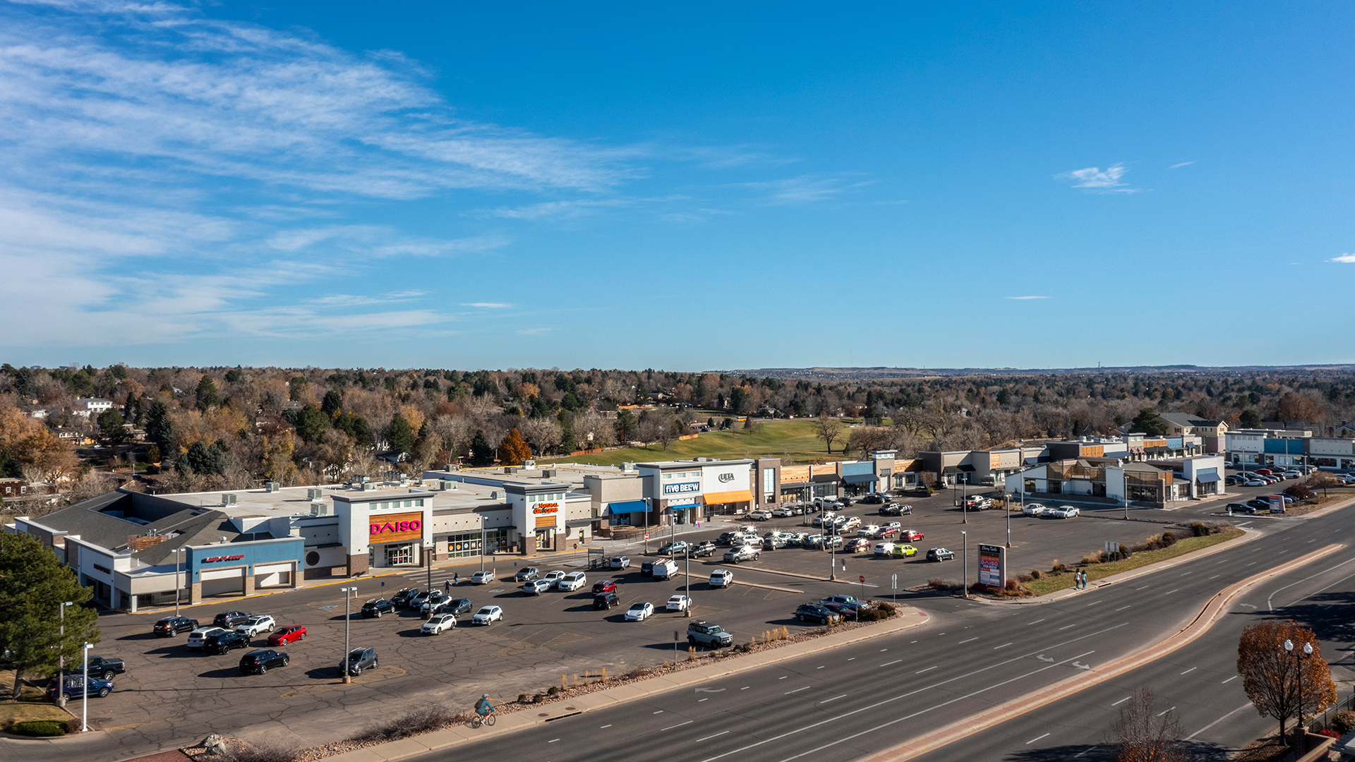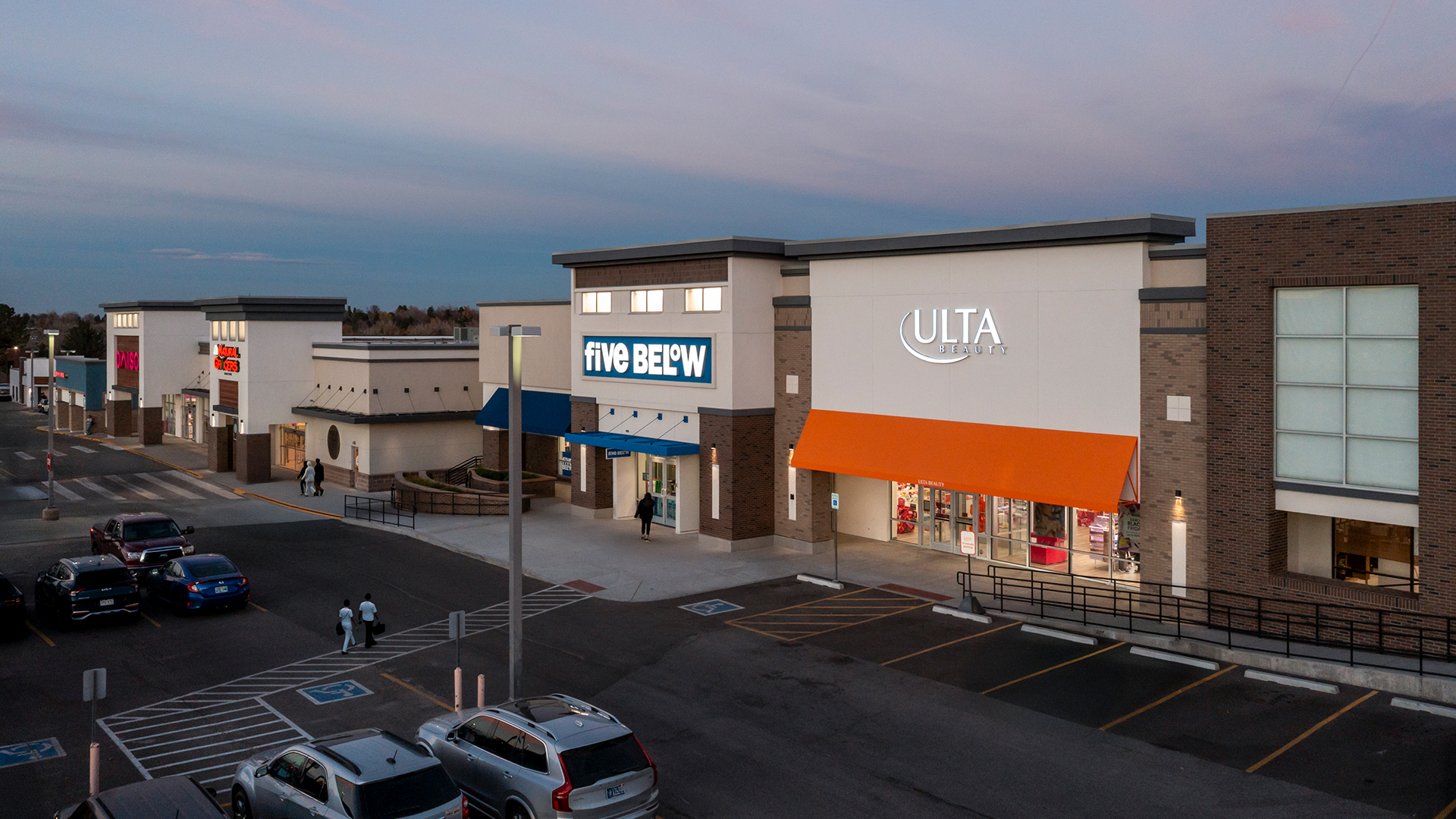 The Cherry Knolls Shopping Center Modernization project consists of remodeling a dated, multi-building, occupied retail development shopping center located at the prominent corner of University and Arapahoe in Centennial, CO. The project was phased and encompassed an extensive overhaul of the 127,000 SF retail shopping center, including an inline building and three (3) outbuildings. During the preconstruction phase of the project, Centerre broke the project into phases and provided value-add recommendations to the design team. The most significant suggestion was to remove the building’s mansard roof and the covered walkway overhang, and to create higher parapets and streamlined tower elements with backlit frosted glass lighting to enhance the sleek, modern aesthetic. Centerre cut in additional openings across a large section of the inline building to provide a new aluminum storefront window system that increases the visibility of storefront windows at the property to improve the natural sunlight into the retail center, allows people to see into the business to create interest on the street, and presents a fresh, appealing face to potential customers or tenants. An exterior cement plaster system with integral color, accented by a thin brick veneer featuring contrasting colors in a staggered pattern. Ipe 1-by-6-inch siding, made from Brazilian hardwood, was installed in a shiplap and fence style to add depth and dimension to the façade. Interior renovations included white-boxes, and retail tenant finish projects for Ulta and Five Below. The project also includes new lighting, stylish signage, and ADA upgrades, resulting in an enhanced customer experience.