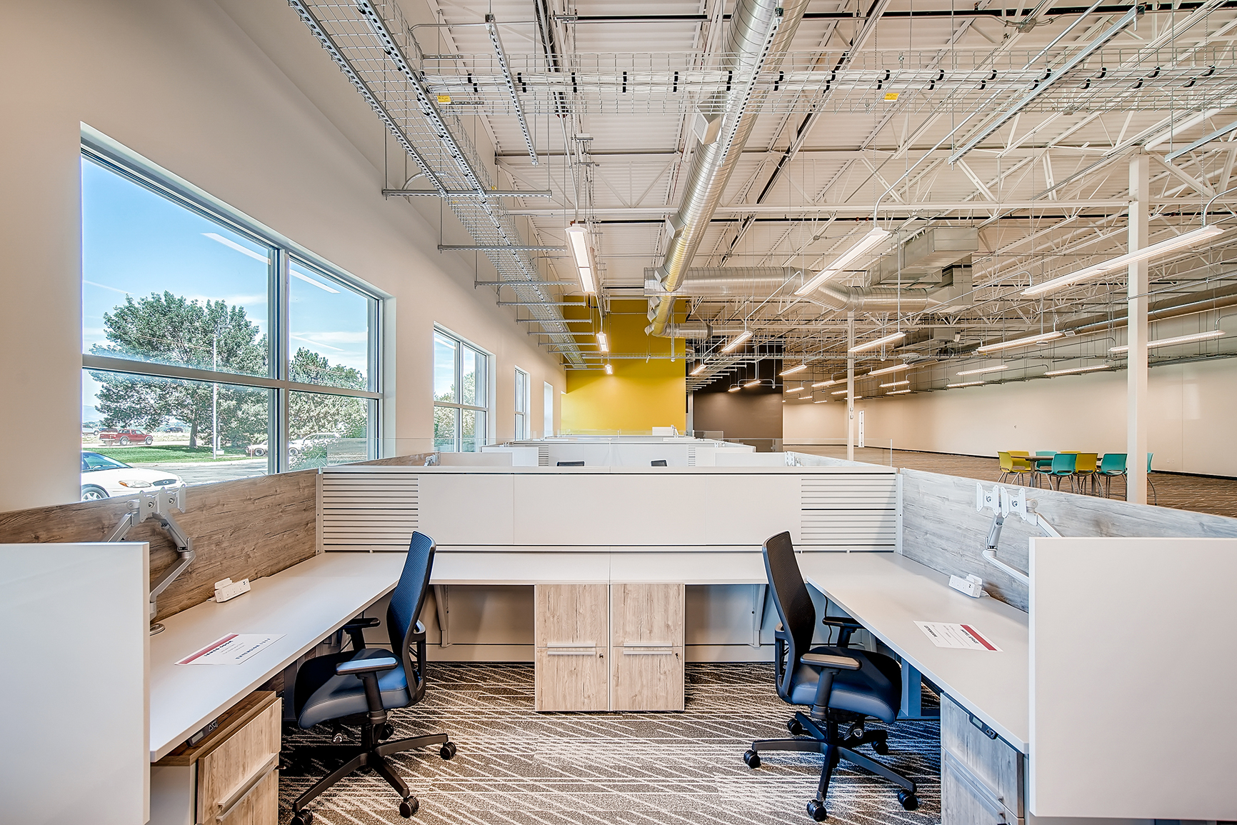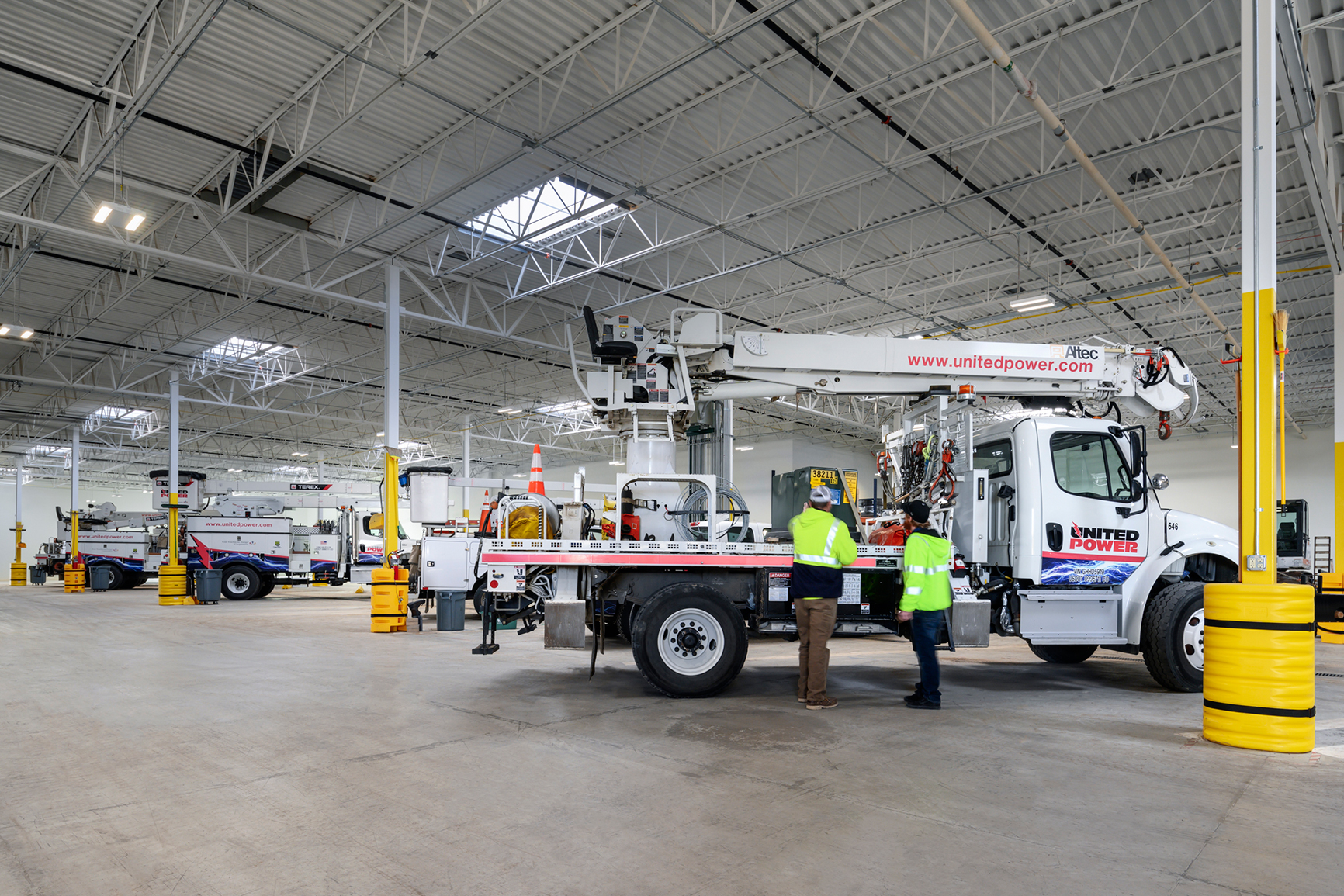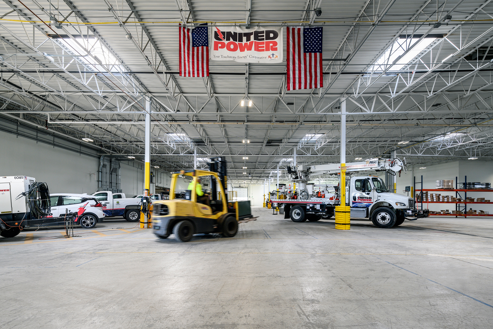 To enable more efficient service in their Western territory, United Power selected Centerre as the design-build contractor, teaming with BurkettEUA, to renovate a 130,000 sf single-story industrial tilt-up building in Longmont, CO for their office and warehouse use. Scope included replacing the HVAC, fire protection and electric systems, removal and replacement of ballasted roof, painting the entire exterior of the building, installation of new skylights, flashing and parapet caps. The interior renovations included the construction of a new 24/7 hardened dispatch center with redundant HVAC and emergency power constructed out of masonry walls and slab on metal deck ceiling to withstand severe weather conditions. The hardened dispatch center was constructed to protect sensitive IT servers, infrastructure, dispatch services, and provide shelter in case of an emergency. Interior renovations included the construction of conference rooms, offices, breakrooms, kitchen and a community center for United Power customers to utilize for meetings. The warehouse renovations included installation of new Overhead Doors, loading ramps, washbays, vehicle storage with CO sensors and exhaust systems, HLVS fans, vehicle maintenance and high bay warehousing. Centerre also painted the entire exterior of the warehouse building.